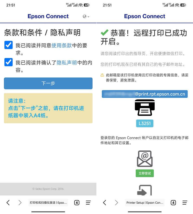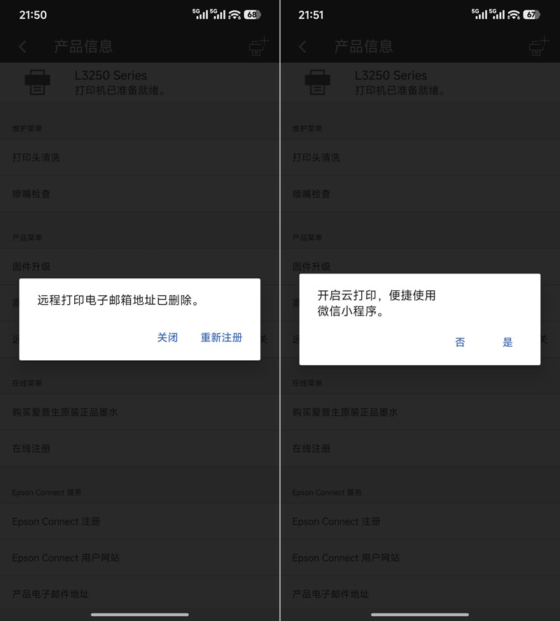 爱普生3251远程打印电子邮箱重新注册方法图解