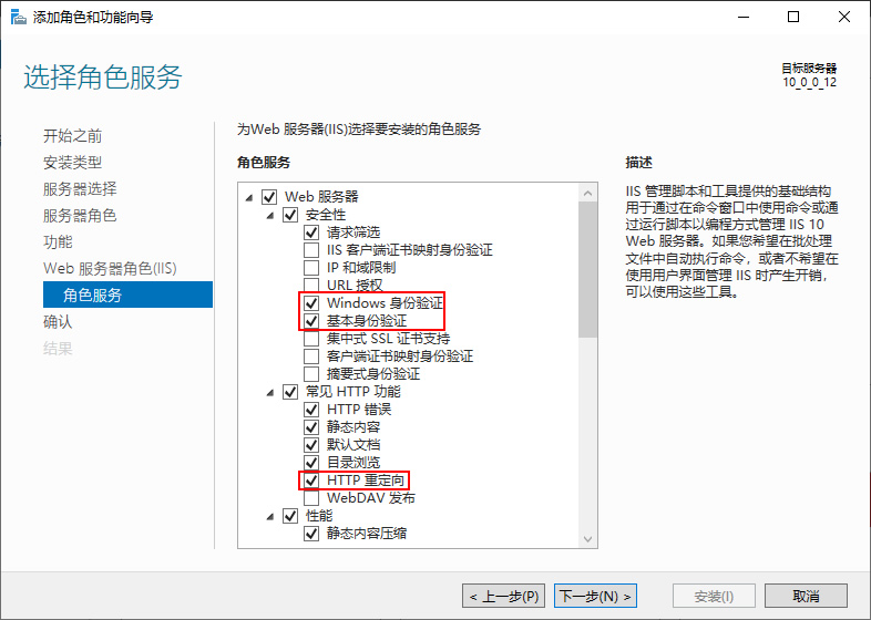 在 Windows Server 2022 部署 ASP/ASP.NET 网站,安装 IIS 10 时,除了默认选择的角色服务外,以下角色服务也建议钩选: